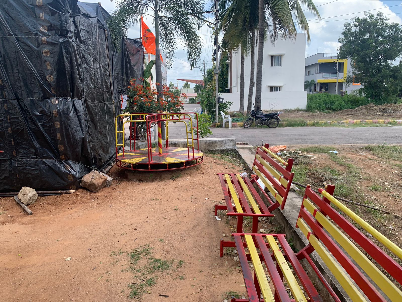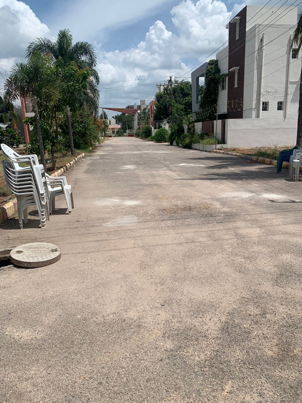 lawn area, gated community, surrounded with greenery, 1 community bore pumps.