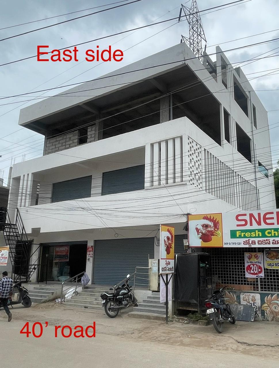 First floor: 2 BHK occupied by the owner and two commercial shutter East facing